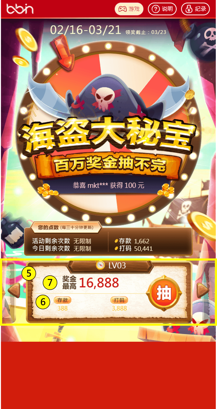 * 若门槛设定存款及打码,会员需同时符合才能进行领奖